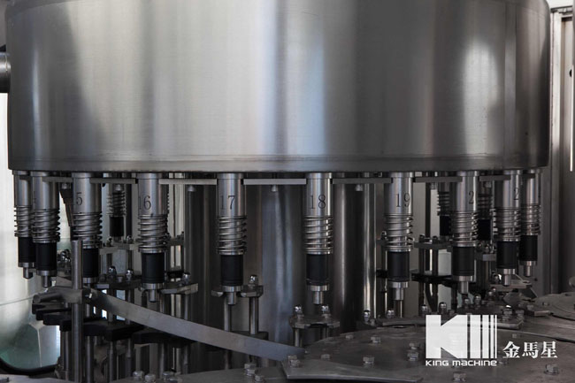 飲用水灌裝機(jī)集沖洗、灌裝、旋蓋于一體,全過(guò)程自動(dòng)化運(yùn)行,主要適用礦泉水、純凈水等不含氣飲料的沖瓶、灌裝、封口連續(xù)作業(yè)。本機(jī)大部分電器系統(tǒng)零件均采用國(guó)外優(yōu)良產(chǎn)品,所有與液料接觸的地方均采用優(yōu)質(zhì)的不銹鋼材料制作,主關(guān)鍵部件采用數(shù)控機(jī)床精密加工, 整機(jī)光電檢測(cè)各部件的運(yùn)行狀況,無(wú)瓶不灌裝,無(wú)瓶不送蓋,自動(dòng)化程度高,操作簡(jiǎn)易,具有耐磨、穩(wěn)定、故障率低等特點(diǎn),產(chǎn)品質(zhì)量處于行業(yè)前列,是新老飲料投資者的選擇。