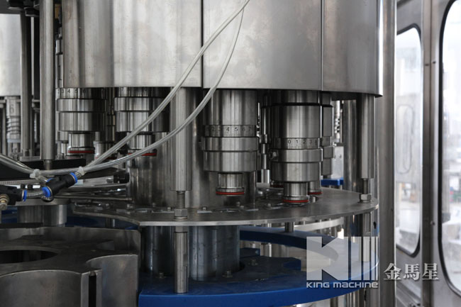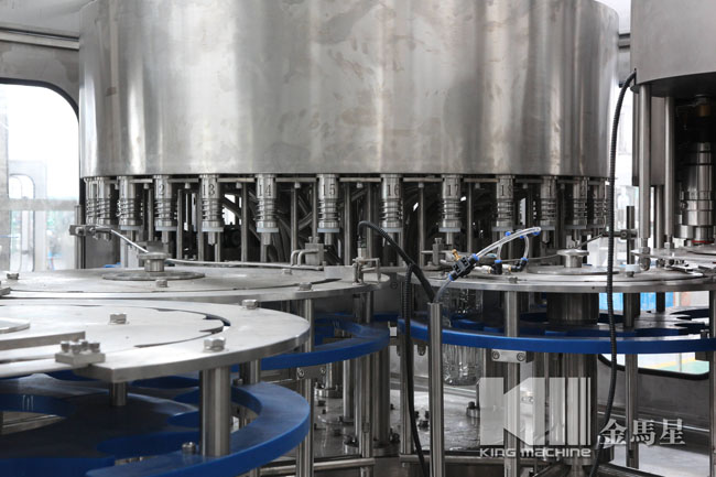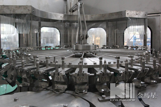 果汁灌裝機同時適用于果汁、茶飲料、功能飲料及果味奶飲料的灌裝。在溫度控制器的幫助下,該機器能夠進行80-95度高溫熱灌裝。本設備采用瓶頸懸掛技術,適用于各種瓶型,跟換瓶型只需調(diào)節(jié)傳送鏈的高度及出瓶玻璃即可,方便快捷。全機PLC控制變頻調(diào)速,自動化程度高,自動控制進液,液位控制準確,無滴漏。與物料接觸部分均為食品級304優(yōu)質(zhì)不銹鋼。是飲料廠家的優(yōu)選產(chǎn)品。