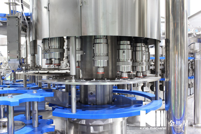 本設備主要用于含汽飲料灌裝,包含沖瓶灌裝和旋蓋三大主要功能。本設備實現全自動運行,能夠適應PET瓶含汽果汁、含汽礦泉水及可樂與雪碧等灌裝。瓶型適應性強,更換瓶型時操作簡單快捷。灌裝方案中采用了等壓灌裝原理,灌裝快速穩定,液位準確,含汽量足。與同類設備相比,本公司產品產量高,運行穩定安全,故障率低,自動化長度高,價格經濟實惠。全機采用優良可編程控制器(PLC)來控制設備的自動運行,送瓶系統由變頻器改變速度,更加穩定可靠。每個部分都有光電單元進行監測,所以更加自動化,操作更加便捷。在此基礎上,更換灌裝單元即可改變灌裝模式到低壓真空灌裝和等壓灌裝等。本設備是飲料企業的選擇。