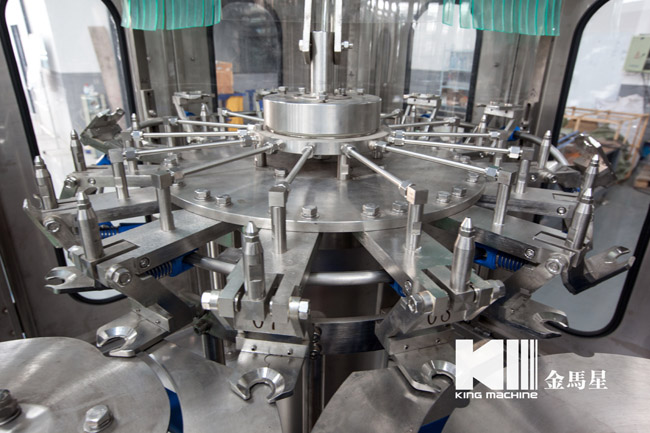 本設備集合了消毒、沖洗、灌裝和壓蓋,合四為一,能夠實現全自動桶裝水旋蓋。沖瓶機使用多種沖品液和消毒液,以保證獲得沖瓶和殺菌效果。消毒液可以循環使用,節省消耗。