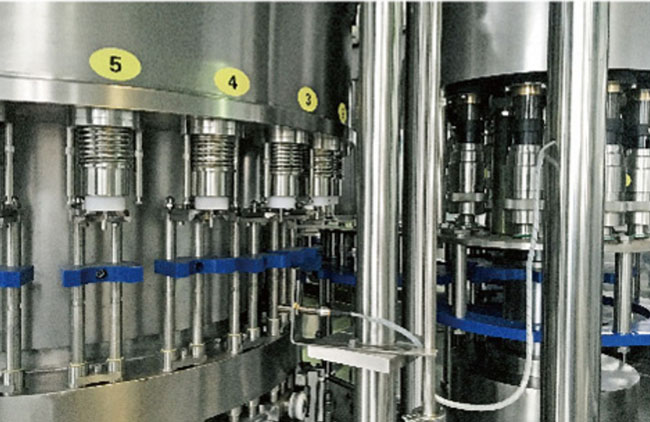 此設備主要應用于灌裝飲料,包含沖瓶、灌裝和旋蓋三大功能。