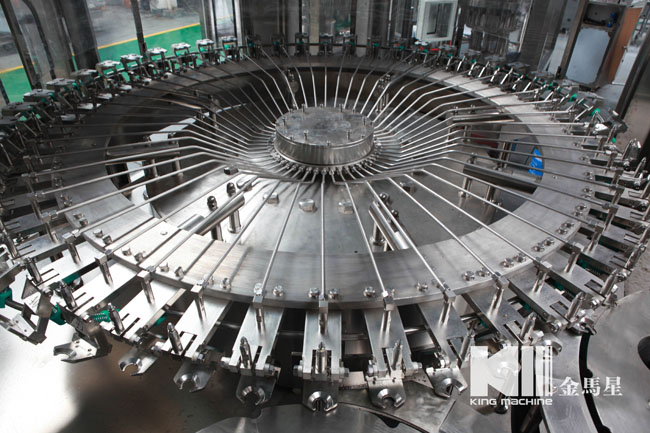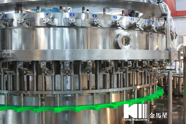 飲用水灌裝機(jī)集沖洗、灌裝、旋蓋于一體,全過程自動(dòng)化運(yùn)行,主要適用礦泉水、純凈水等不含氣飲料的沖瓶、灌裝、封口連續(xù)作業(yè)。本機(jī)大部分電器系統(tǒng)零件均采用國外優(yōu)良產(chǎn)品,所有與液料接觸的地方均采用優(yōu)質(zhì)的不銹鋼材料制作,主關(guān)鍵部件采用數(shù)控機(jī)床精密加工, 整機(jī)光電檢測各部件的運(yùn)行狀況,無瓶不灌裝,無瓶不送蓋,自動(dòng)化程度高,操作簡易,具有耐磨、穩(wěn)定、故障率低等特點(diǎn),產(chǎn)品質(zhì)量處于行業(yè)前列,是新老飲料投資者的選擇。