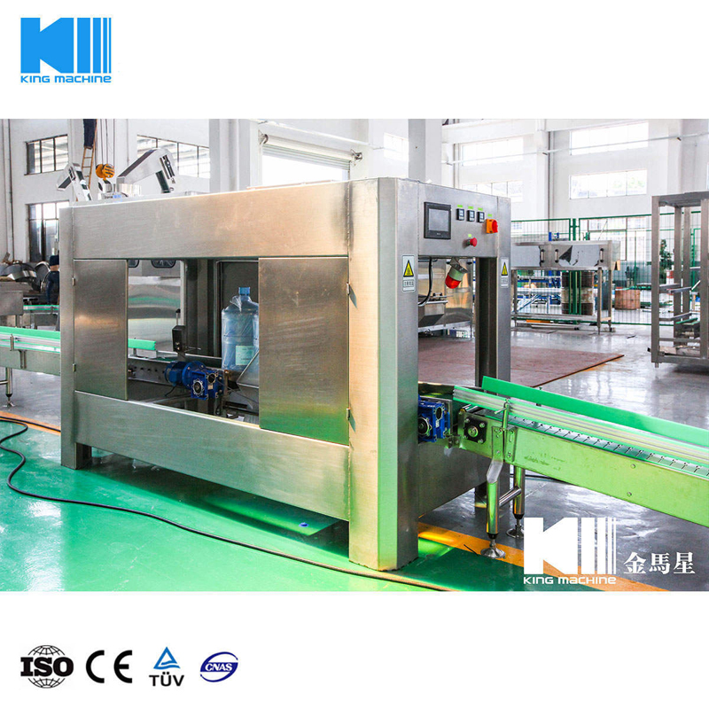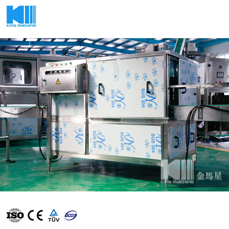 本設備集合了消毒、沖洗、灌裝和壓蓋,合四為一,能夠實現全自動桶裝水旋蓋。沖瓶機使用多種沖品液和消毒液,以保證獲得沖瓶和殺菌效果。消毒液可以循環使用,節省消耗。