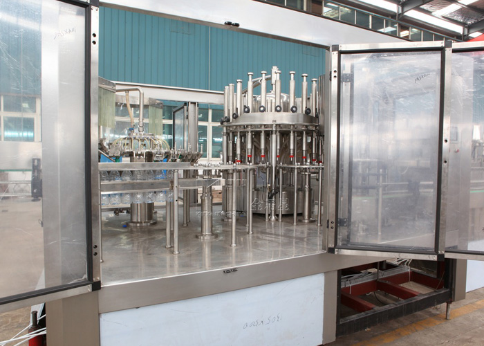 飲用水灌裝機集沖洗、灌裝、旋蓋于一體,全過程自動化運行,主要適用礦泉水、純凈水等不含氣飲料的沖瓶、灌裝、封口連續作業。本機大部分電器系統零件均采用國外優良產品,所有與液料接觸的地方均采用優質的不銹鋼材料制作,主關鍵部件采用數控機床精密加工, 整機光電檢測各部件的運行狀況,無瓶不灌裝,無瓶不送蓋,自動化程度高,操作簡易,具有耐磨、穩定、故障率低等特點,產品質量處于行業前列,是新老飲料投資者的選擇。